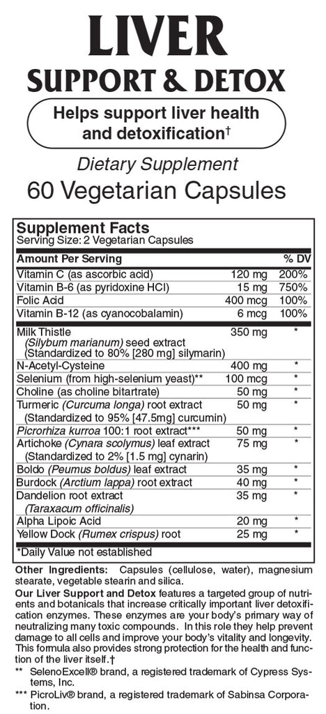 Our Liver Support and Detox is a comprehensive liver support formula, containing a synergistic combination of B-Vitamins, minerals, botanical and other nutraceuticals.